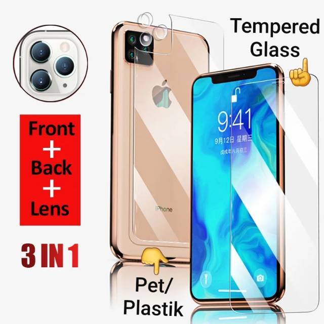 Paket 3in1 Iphone 11 11 Pro 11 Pro Max Lensa Pet Tempered