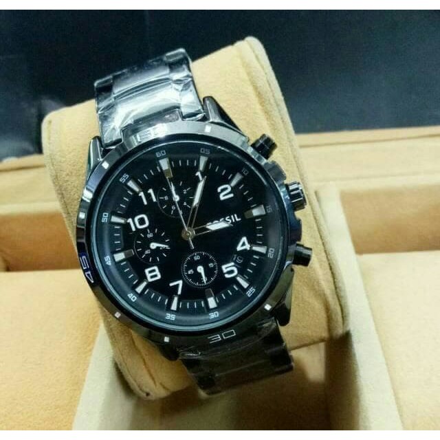 Jual Jam Tangan Fossil Rantai Silver Chrono Aktif Full Black