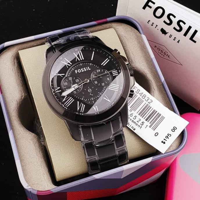 Jual Fossil Fs4812 Grant Chronograph Black Leather Watch Baru